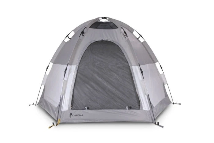 Catoma is excited to introduce a new addition to the Speedome family of tents! The Sable is designed to be the “Goldilocks” size between our smaller Falcon and the Eagle, the largest SpeeDome. Not too big, not too small, the Sable is sized perfectly to fit queen air mattresses with just enough space in the corners to neatly organize your gear. This tent is the perfect solution for music festival camping, canoe camping, or family camping at your favorite state park. SpeeDome tents boast a remarkably durable speed hub system that allows the tent to be set up in just a couple of minutes.