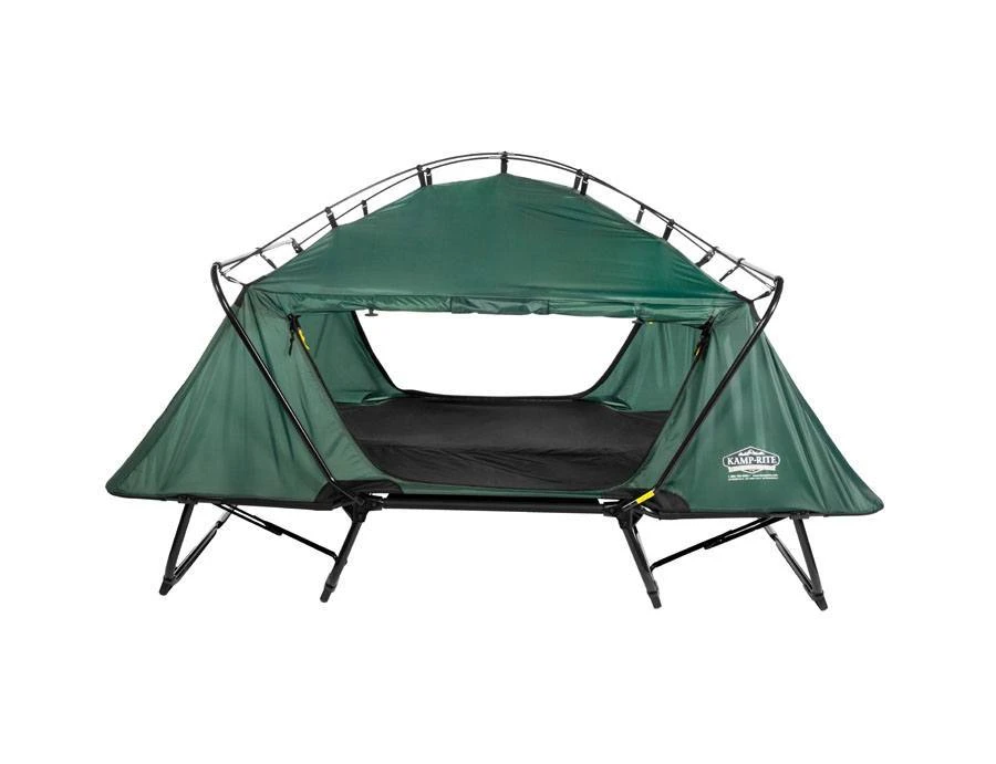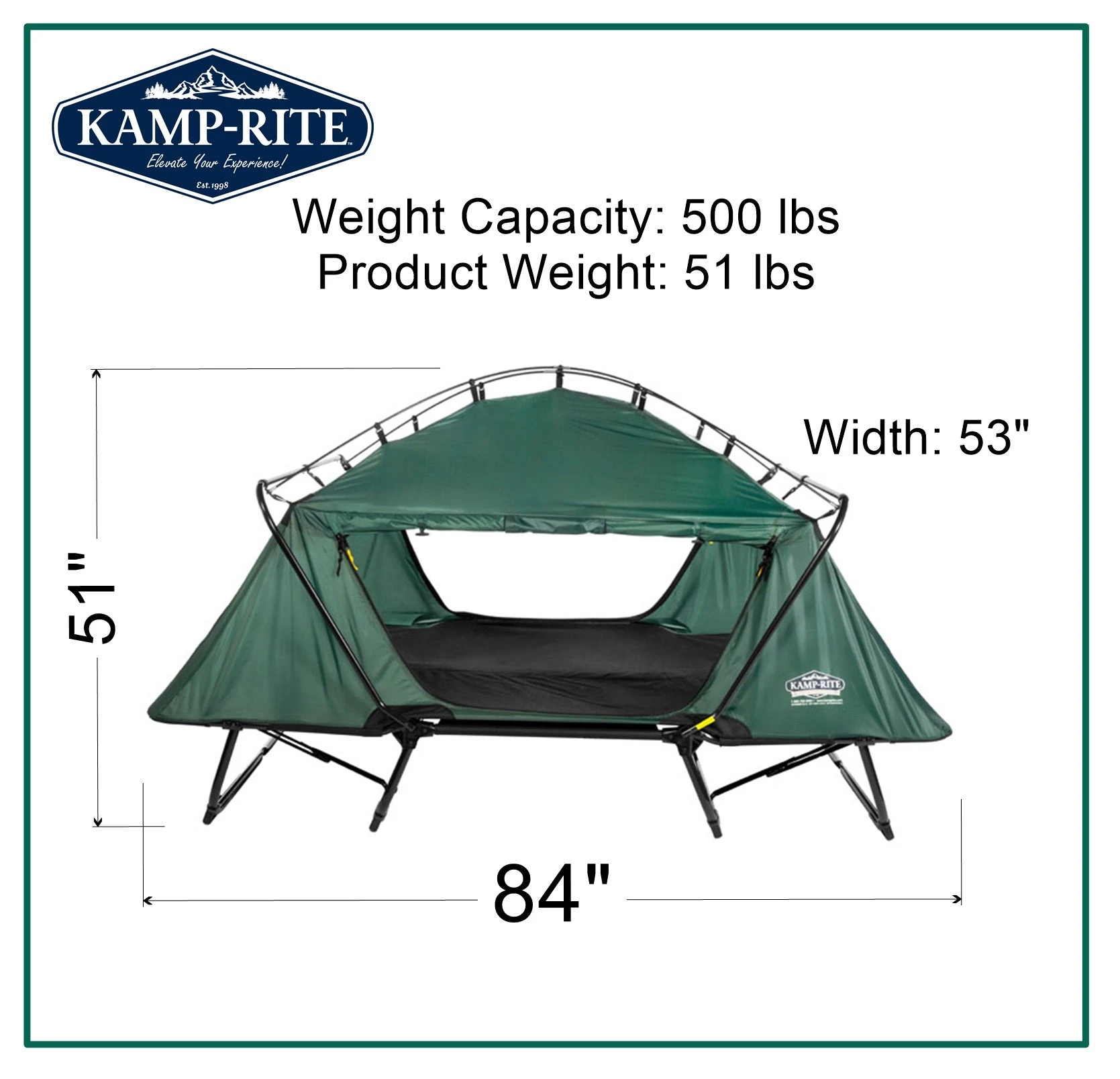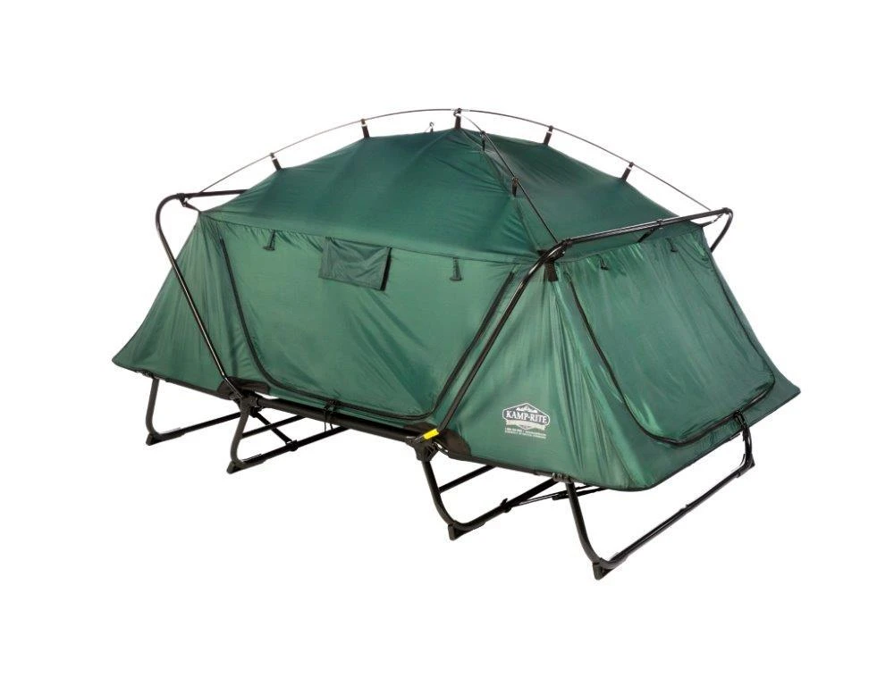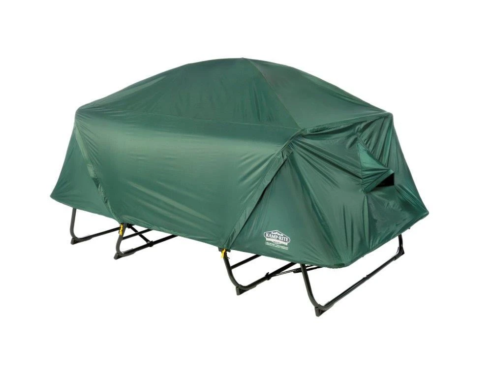 Kamp-Rite’s Double Tent Cot is the two-person version in the line of Tent Cot products. The sturdy, fiberglass frame keeps you 11” above the ground to provide comfort and protection from insects, rocks and dampness. The fully enclosed Double Tent Cot creates a private sleep shelter and brings a level of convenience to outdoor outings not typically found with old style camping gear. The quick, easy set up can be done alone without the help of an extra pair of hands, making it the ideal solution to get out and enjoy the Great Outdoors more often and more comfortably. The unique hinge design creates great versatility and function. Just release the clips at each end of the Tent Top, drop the Tent Top down and elevate the “Chair Back” section of the cot base to convert to a lounge chair by day, or keep the cot base flat for use as a standard style cot for sleeping under the stars or in a larger family style tent.