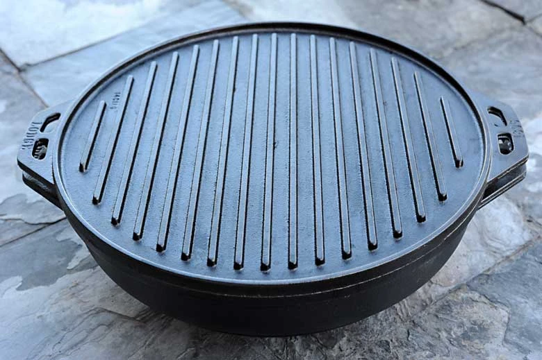 The Lodge 14 Inch Cast Iron Cook-It-All is the only outdoor cookware you need. With 5 Cooking configurations, and only 2 pieces of cast iron, the Cook-It-All brings a whole world of possibilities to your campsite cuisine. It is a versatile piece for grilling, griddling, sauteing and baking.