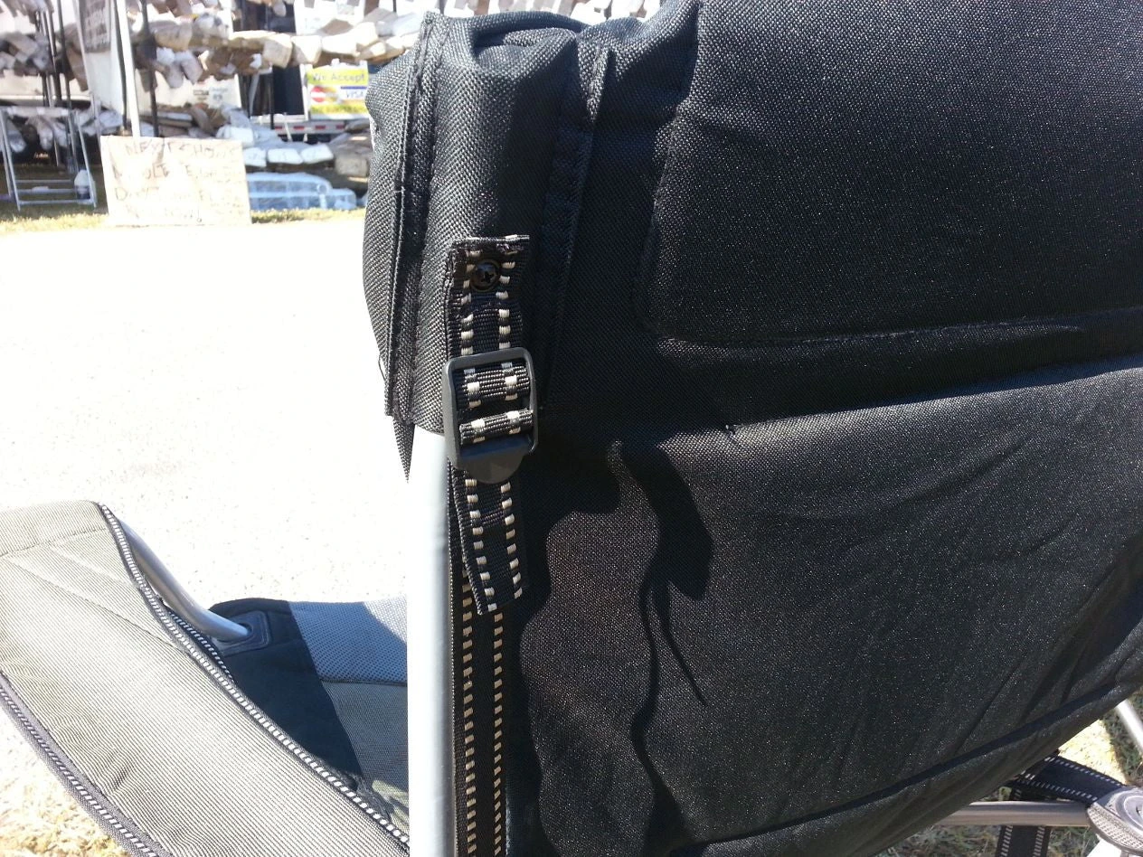 The Oztent King Goanna Chair offers the lowest relax sit of all the Oztent line chairs (excluding the Oztent Goanna Chair which is a low back version), designed for comfort with a few other features not found on other “bag style” chairs, such as the insulated cup holders on both sides and drip spouts at the bottom of holder to avoid the condensation build up, adjustable arm rests that buckle in place, the adjustable lower lumbar hugs your back and a place to store your chair bag (in the zippered pouch in headrest) instead of draping it on back of your chair. If you need to clean up, no problem just hose off and the polyester fabric dries quick.