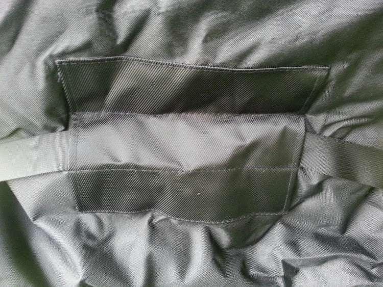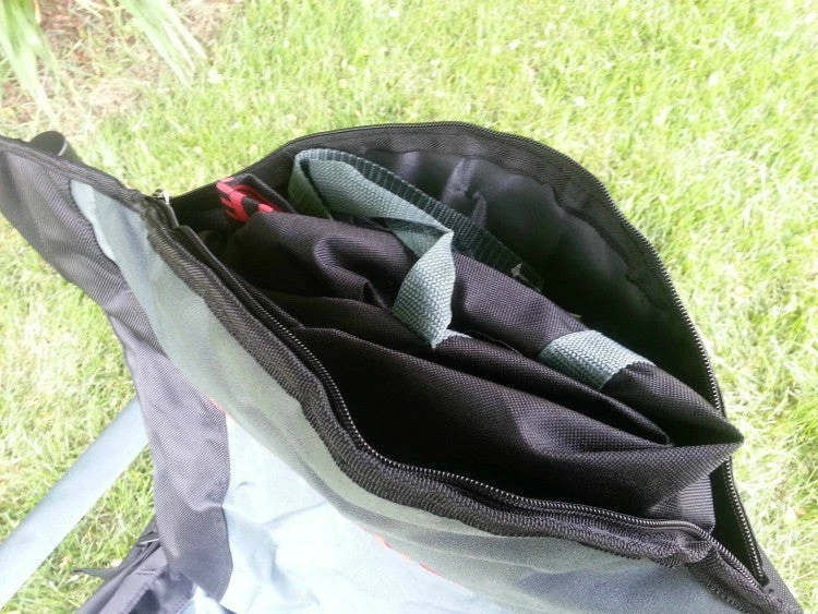 - Zippered pocket for carry bag creates a pillow