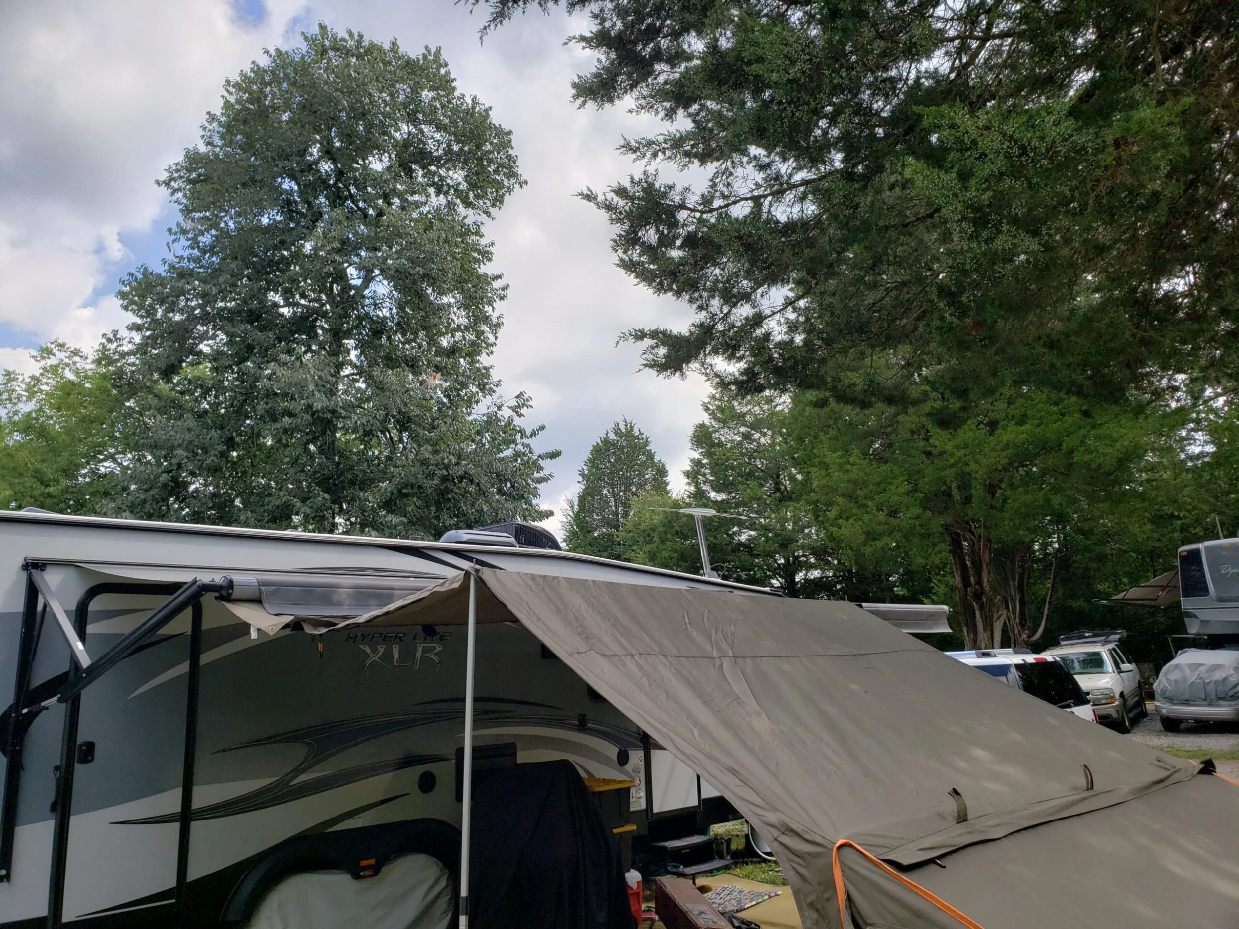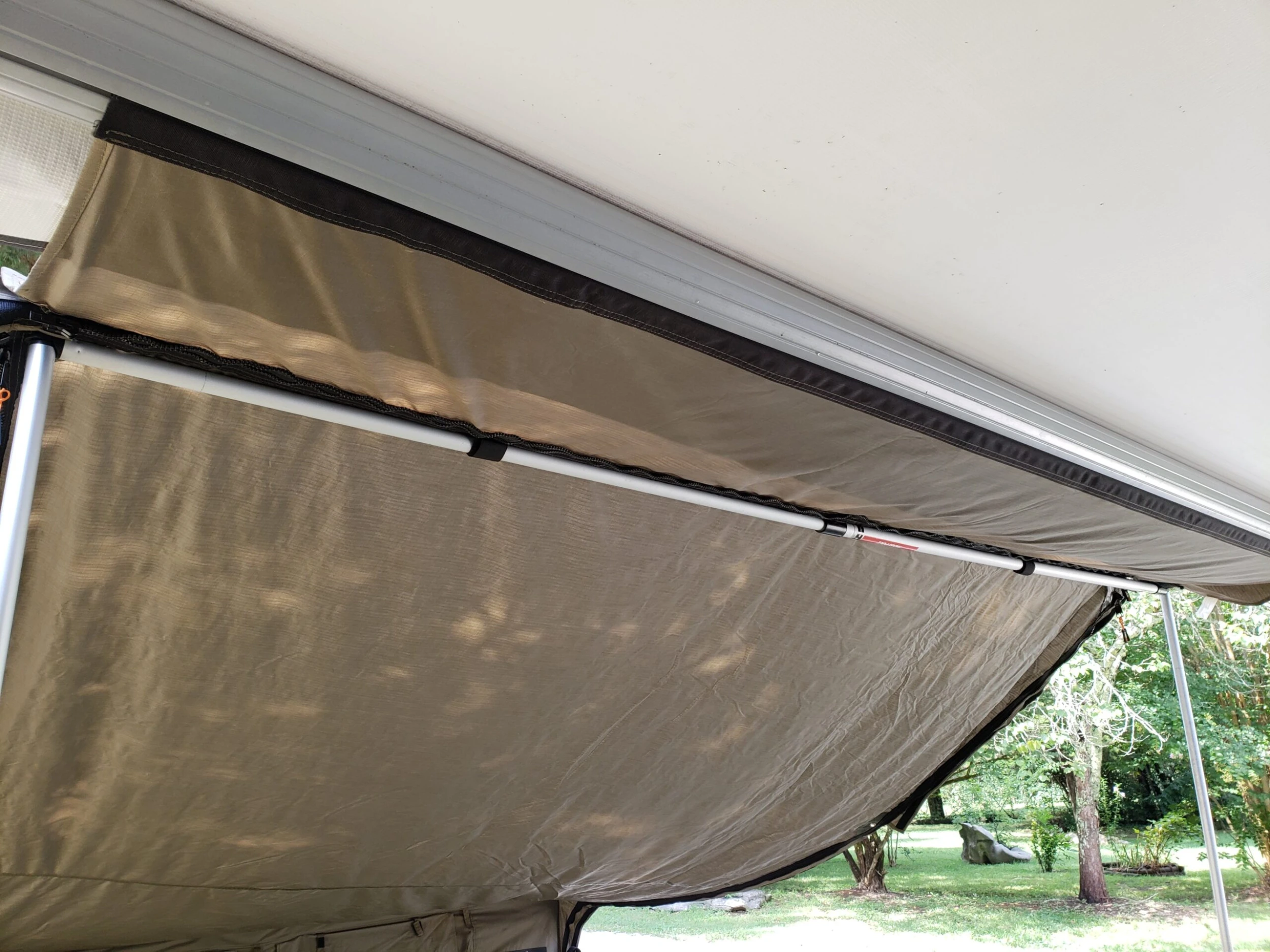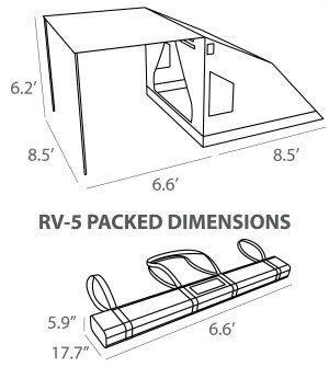 - Extra large attached awning with two easy-to-use twistlock telescoping aluminum poles