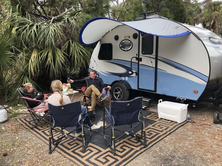 IMPORTANT NOTE: Forest River uses two sizes of awning rails on the side of the R-Pod trailers, older models have a smaller keder rail that uses an inside diameter of .40″ (9-10mm). Newer models have the larger .563″ (14mm) inside diameter rail. The shape of the visor depends on the trailer model, and doesn’t look the same as the picture.